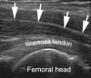 장요근(Iilopsoas)의 건이 대퇴골두 앞쪽과 관절낭 또는 장치융기(Iliopectineal eminence) 위를 지나면서 탄발음이 발생하는 경우입니다.