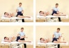 증상이 없는 쪽 다리가 밑으로 가게 하면서 옆으로 눕습니다.