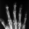 가끔 손가락의 퇴행성 관절염 증상과 연관되어 헤버덴 결절(Heberden nodes)이 보이기도 합니다.