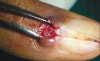 특히 손톱 밑에 1cm 미만의 작은 자주빛의 종괴로 생깁니다.