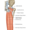 대둔근(gluteus maximus), 대내전근(adductor magnus)의 hamstring part, 햄스트링(hamstring) 근육을 주의 깊게 촉진합니다.