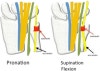 아탈구의 경우 힘줄이 회외(supination)시 아탈구가 되었다가 회내(pronation)시 제자리로 되돌아옵니다.