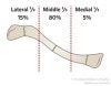 치료방법보다는 골절 위치(중간 1/3 80%, 먼쪽 1/3 15%, 몸쪽 1/3 5%)로 분류하는 방법이 많이 사용됩니다.