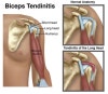 상완이두근염(Biceps tendonitis, Biceps tendinitis) : 반복적인 아령 운동 후 어깨 앞쪽이 아픕니다