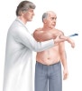 동통으로 인한 어깨 관절의 운동 감소, 특히 내전 및 반대쪽 어깨로의 움직임이 감소하게 됩니다.