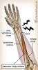손목을 촉진해보니 다른 힘줄에는 특별한 압통이 느껴지지 않았으나 척측수근신근(ECU : Extensor carpi ulnaris)의 종지부인 5th metacarpal bone의 ulnar base를 눌러보니 강한 압통을 호소하였다.