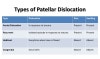 1. Congenital : 슬관절 기형 동반. 슬관절 위치에 관계없이 항상 탈구