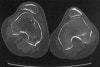 Lateral view는 슬관절 30도 굴곡 상태에서 patellar alta, genus valgum, hypoplasia of lateral femoral condyle가 보입니다.