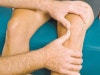 무릎뼈에 손을 대고 무릎의 전 가동범위 움직임 동안 잡음이 느껴지나 보고, 있다면 어느 위치에서 느껴지는지 기록합니다.