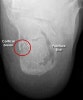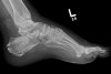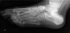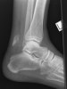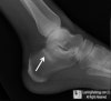 (Thin calcification adjacent to anterolateral calcaneus on oblique view)