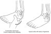 발목의 내번염좌 손상 후에는 발목 또는 거골하 관절의 만성적 불안정이 생길 수 있습니다.