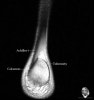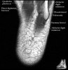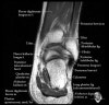 Axial PD fat suppression evaluates the tendons and ligaments of the ankle particularly after acute/subacute injuries. It also is sensitive to talar dome osteochondral defects. Alternatively, a T2 sequence can be used to eliminate magic angle artifact that may occur as the tendons travel around the malleolar turns.