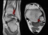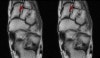 Coronal (left) and axial (right) T1W images assessing the normal spring ligament.