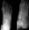 Congenital bipartite navicular일 가능성이 있으므로 감별을 필요로 하지만 안정에 의한 통증의 소실이나 가골의 형성에 의해 진단할 수 있습니다.