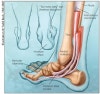 힘줄은 비후되고 퇴행성 변화를 보입니다. 그 결과 후경골근 기능의 약해져서 발의 안쪽 세로족궁을 지지해주지 못하므로 편평발이 생기게 됩니다.