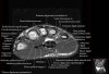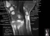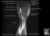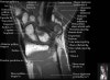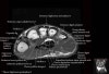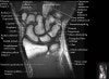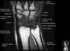 Axial PD fat suppressed evaluates the tendons of the wrist and carpal tunnel, including the median nerve.