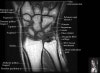 Coronal T1 imaging evaluates bone marrow signal (ex. increased in avascular necrosis) and the relationship of the osseous structures to each other (ex. scapholunate disassociation).
