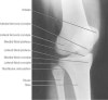 Demonstrates: femorotibial articulation, patellofemoral articulation, Femoral condyles should be superimposed.