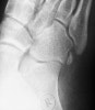 X-ray에서 제5중족골 기저부의 근위부에 작은 부골이 관찰됩니다.