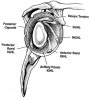 3) Biceps labral complex : Biceps long head는 superior labrum을 경유하여 Superior glenoid tubercle에 부착