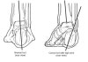 후족부에 대하여 전족부가 첨족변형(equinus deformity)을 일으켜 족궁이 비정상적으로 높아집니다.
