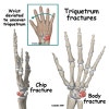 삼각골 골절(Triquetrum fracture) : 넘어지면서 팔을 펴고 짚은 뒤 삼각골이 부러졌어요