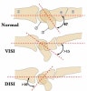 Lunotriquetral ligament의 점진적인 손상과 관련된 형태로 lunotriquetral ligament의 파열, 주상골와 함께 월상골도 수장쪽으로 굴곡합니다.