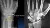 X-ray를 촬영합니다(PA view, lateral view, ulnar deviation and radial deviation view, flexion and extension view).