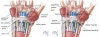 근력이 약화되어 있으면 새끼두덩 위축과 내재근 약화 소견이 보입니다.
