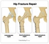 수술방법은 수술부위(대퇴골 목 or 돌기사이 골절), 전위여부, 환자의 활동력에 따라 결정합니다.