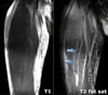 T1 : Hypointense tendon, T2 : Proximal hyperintensity