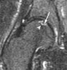 대퇴골두 연골하 골절이 있을 경우 crescent sign이 관찰되고, 괴사 부위가 함몰될 경우 골두가 납작해지면서 이차적인 퇴행성 변화가 초래됩니다(대퇴골두가 차차 붕괴되고 절구가 2차성 퇴행변화가 오면 퇴행성 고관절염과 감별이 어려울 수 있습니다).