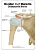극상근 힘줄의 약화 여부 평가를 위해 팔을 90º 올리면서 내회전 시킨 자세에서(엄지를 돌려 밑으로 향하게 함) 환자에게 저항하라고 하면서 팔을 아래쪽으로 밉니다. 만일 근력약화 소견이 보이다가 점액낭 밑 주사 후 근력이 회복된다면 회전근개 파열로 인한 근력약화보다는 염증과 섬유화로 인한 통증이 근력약화의 요인입니다.
