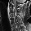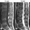 추체와 그 사이의 추간강 부위는 T2 강조영상에서는 신호강도 증가, T1 강조영상에서는 신호강조 감소되어 경막 외 확장이나 연부조직 농양의 윤곽을 나타내는 데 유용합니다.