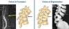 원인 : 척추의 퇴행성 변화로 인한 추간판의 변화와 근력 약화, 압박 골절