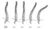 - 경추부, 흉요추부, 요추부 : 후만을 보이면 비정상