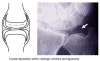 - 방사선 소견 : meniscus에 점상, 선형은 chondrocalcinosis