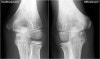 The medial epicondyle of the affected arm is somewhat more osteopenic. In these cases we usually ask for a comparison view, because it can be very subtle.