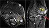 There is marrow edema in the medial epicondyle and also in the adjacent bone (yellow arrow).