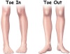 안짱다리 모양의 걸음걸이로, 여성과 소아에서 흔합니다.