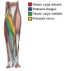 수관절의 장측에서 척골신경이 이 힘줄의 요측을 함께 달리고 있다.