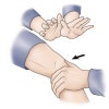 검사자는 환부의 내측에 서서 슬신전위 자세로 환자의 무릎 외측부를 양쪽 엄지를 제외한 나머지 손가락으로 잡고 슬개골의 양손 엄지를 사용하여 외측으로 압박합니다.
