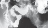 Longitudinal ulcer가 보이는 Ba enema 사진