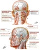 그렇다면 근본적인 두통 치료의 핵심은 무엇일까요? 결론적으로 두통 치료의 핵심은 경추에 있습니다. 머리로 상행하는 신경의 대부분은 아래 그림과 같이 경추를 통해 올라가게 됩니다.