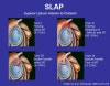 | 1. 제1형 : 상부 관절와순의 마모나 변성 2. 제2형 : 상부 관절와순 및 상완이두근 장두건이 관절와연(glenoid rim)에서 떨어진 병변(가장 흔함) 3. 제3형 : 상부 관절와순의 양동이 손잡이형 파열 4. 제4형 : 상부 관절와순의 양동이 손잡이형 파열이 상완이두근 장두건까지 연장된 것 5. 제5형 : 상부 관절와순 파열이 전방 관절와순까지 연장된 것(SLAP + Bankart lesion) 6. 제6형 : 상부 관절와순의 피판형 파열(flap tear) 7. 제7형 : 상부 관절와순 파열이 중관절와상완인대까지 연장된 것 8. 제8형 : 상부 관절와순 파열이 후방 관절와순까지 연장된 것(SLAP + reverse Bankart lesion) 9. 제9형 : 관절와순 전체가 원주형으로 떨어진 것(circumferential labral tear) 10. 제10형 : 상부 관절와순 파열이 상관절와상완인대까지 연장된 것 |