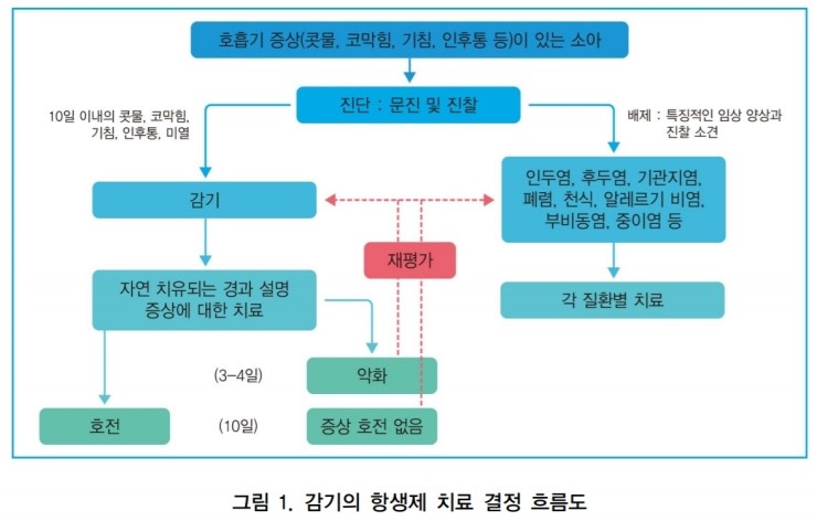 다시 말해 상기도 감염 환자를 진찰하여 감기와 감기가 아닌 질환을 구분하고 감기일 경우 항생제를 사용하지 말하는 뜻입니다.