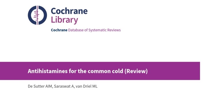 2015년에 코크란(Cochrane)에서는 '감기에 대한 항히스타민제(Antihistamines for the common cold)'에 대해서 리뷰 논문을 발표하였습니다.