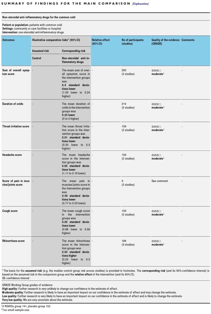 2015년에 코크란(Cochrane)에서는 '감기에 대한 진통제의 효과(Non-steroidal anti-inflammatory drugs for the common cold)'에 대해서 리뷰 논문을 발표하였습니다.