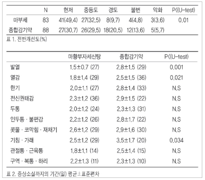 - 마황부자세신탕의 감기에 대한 효과를 검토한 무작위 비교시험
