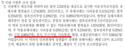 아래는 기침 패치에 동봉되어 있는 설명서 중 부작용에 관한 내용입니다.